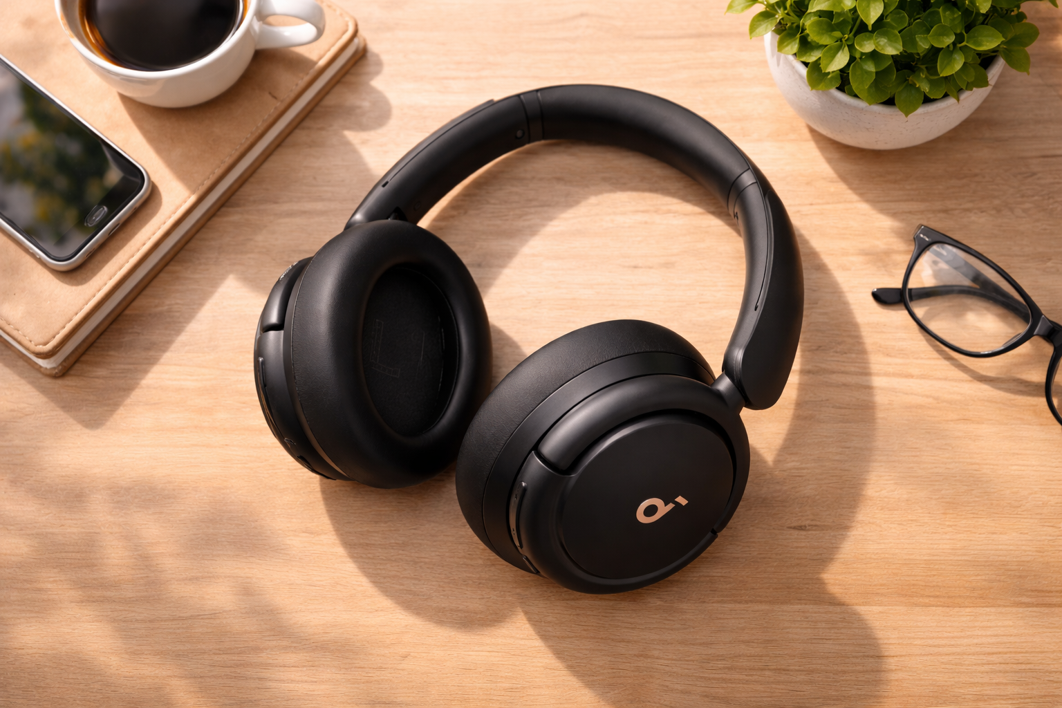 Comfort wise — these are great for long sessions. The ear cushions are soft, the headband doesn’t dig into your head after an hour, and the earcups fold up nicely so you can toss them in a bag without stressing about them. Everything about how these are physically put together just shows that Anker thought it through properly. Real effort went into this design and you can feel it the moment you pick them up.